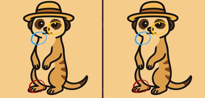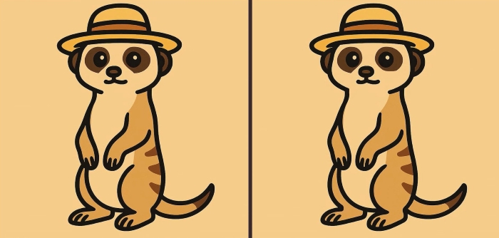 Tak co, jste připraveni na další výzvu? Podívejte se pozorně na dva obrázky surikaty v klobouku. Na první pohled mohou vypadat stejně, ale jsou mezi nimi tři malé rozdíly. Myslíte si, že je všechny najdete za 49 sekund? Zkuste to a otestujte svou ostrost zraku!