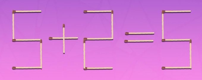 Je zřejmé, že zde něco není v pořádku, protože součet těchto dvou čísel by se měl rovnat 7. Vaším úkolem je chybu v rovnosti opravit. Můžete však přesunout pouze jednu shodu z 19. Kterou – to budete muset zjistit.