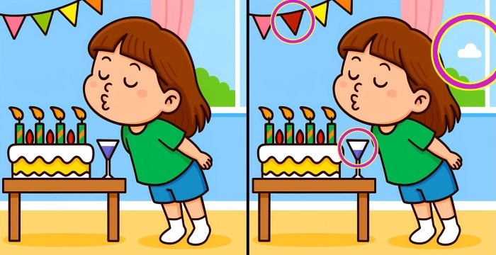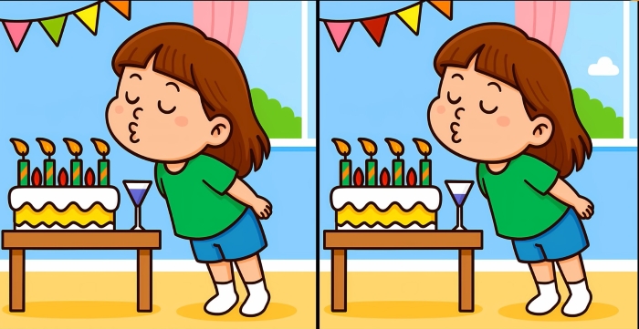 Tak co, jste připraveni na další výzvu? Podívejte se pozorně na dva obrázky dívky, která sfoukává svíčky na dortu. Na první pohled mohou vypadat stejně, ale jsou mezi nimi tři malé rozdíly. Myslíte si, že je všechny dokážete najít za 31 sekund? Zkuste to a otestujte svou ostrost zraku!