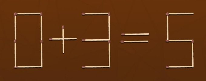 Na obrázku níže vidíte rovnost 0+3=5 vytvořenou pomocí sirek. Je zde chyba, protože odpověď by měla být 3.