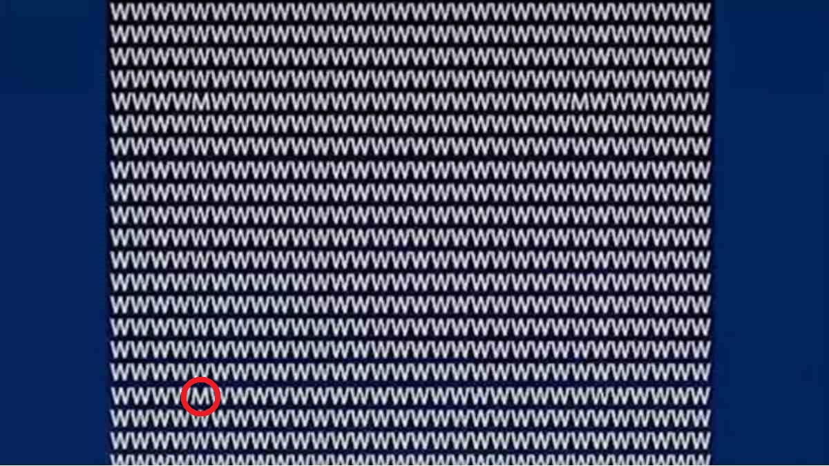 V dalším optickém klamu musíte mezi velkým množstvím písmen W najít písmeno M, píše jagranjosh. Není snadné si všimnout, kde je ukryto písmeno, které se liší od všech ostatních.