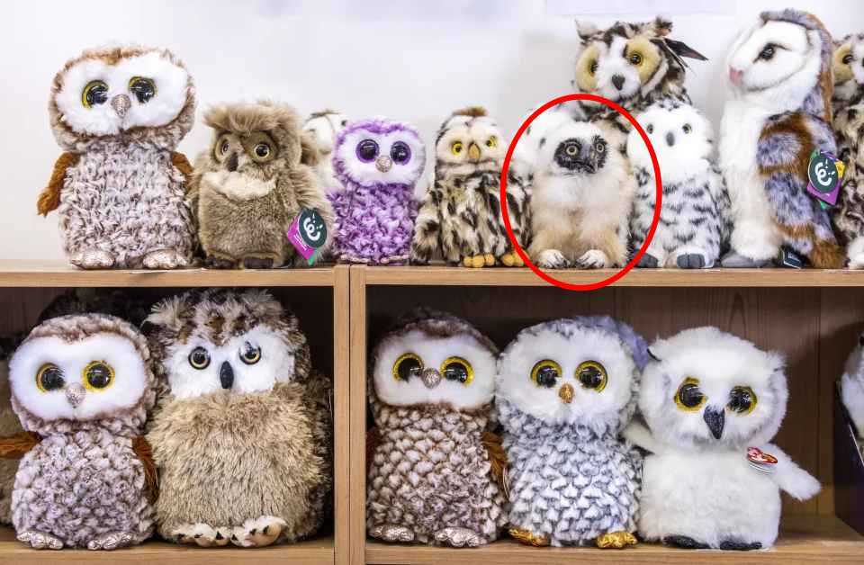 V další hádance musíte mezi plyšovými hračkami najít skutečnou sovu, píše jagranjosh. Nebude snadné pochopit, který pták je skutečný, protože je velmi dovedně včleněn do skupiny hraček – je dokonce obtížné ho rozeznat.